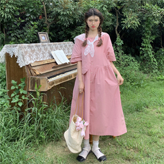 Real price baby collar detachable age reducing top + A-line skirt suit