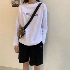 Real price Korean slim long sleeve T-shirt women's irregular split letter foreign style top