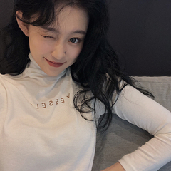 Real price ~ loose and versatile small high neck wave edge long sleeve T-shirt